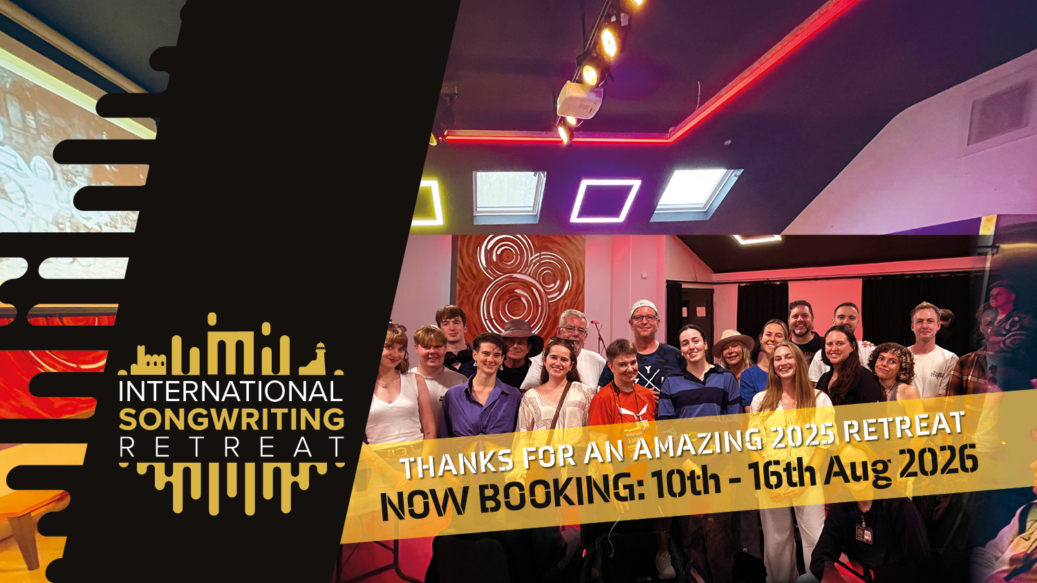 THE International Songwriting Retreat is BACK! 2026 APPLICATIONS Opening soon!10th - 16th august 2026 Learn more REGISTER NOW Youth Songwriting Retreat (Ages 14-18)More information coming soon!
